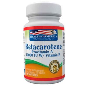 Betacaroteno (Provitamina A) 10000 IU Con Vitamina E x 100 Softgels ,El Beta-Caroteno mas provitamina A es parte de la familia de los carotenoides y fácilmente se convierte en vitamina A en el sistema cuando sea necesario. Beta-caroteno es también un partidario del sistema inmune y antioxidante. Los antioxidantes ayudan a combatir las células radicales libres dañinos en el cuerpo. Los radicales libres pueden conducir a estrés oxidativo, lo que puede contribuir al envejecimiento prematuro de las células.