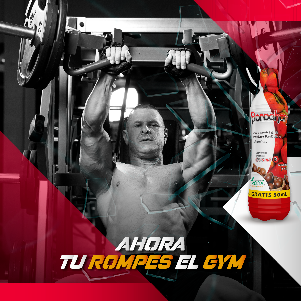 Jugo de chontaduro, Jugo de borojo, Proteina hidrolizada, Miel de abejas, glicerina, gluconato de calcio, gluconato de hierro, Benzoato de sodio, Vitamina C, Niacina, Vitamina B6, Vitamina B2, Vitamina b1. Sabor a Guarana.