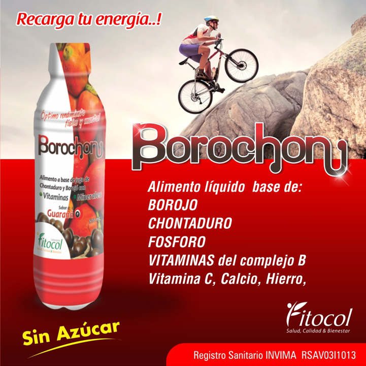 Esta bebida es a base de jugo de chontaduro y borojo con Vitaminas y minerales.