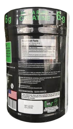 Contiene por Scoop; Monohidrato de Creatina 6g, Fenogreco 50mg
