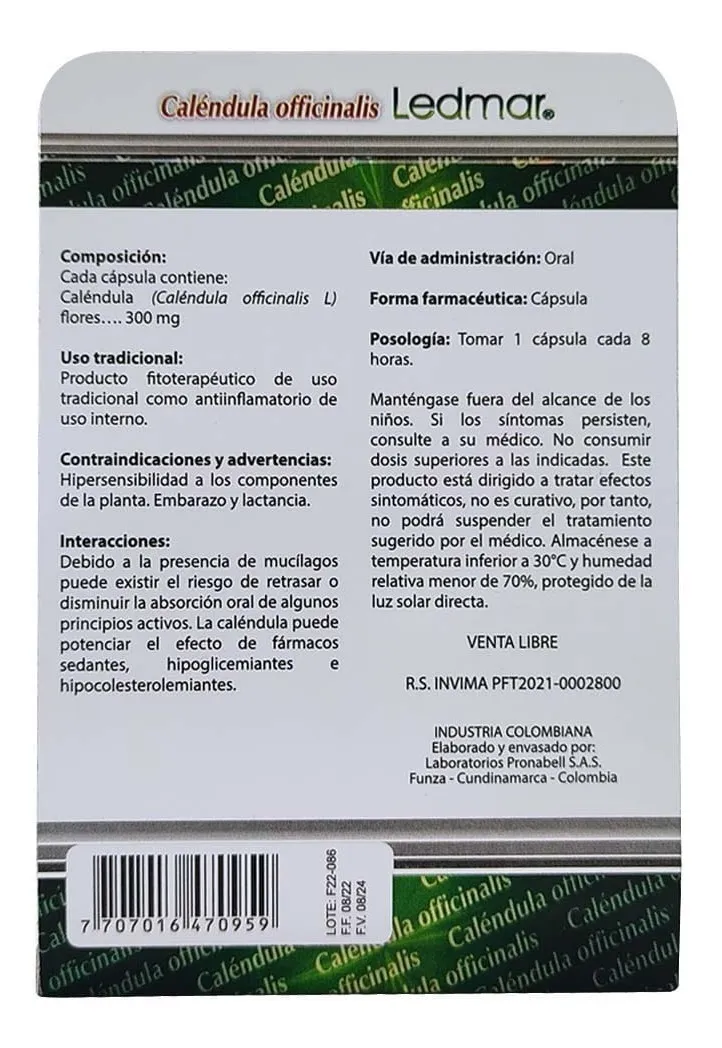 Cada Capsula contiene extracto seco de FLORES DE CALENDULA (Calendula officinalis).