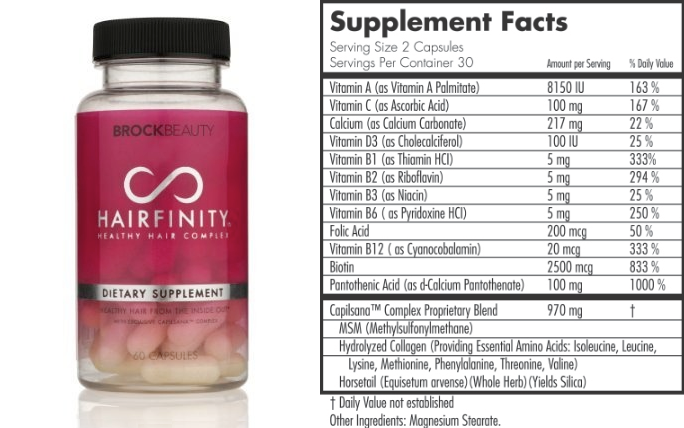 Hairfinity llena los vacíos dejados por su dieta regular para proporcionar a su cuerpo los nutrientes que necesita para el crecimiento sano del pelo. Los clientes informan que el pelo se ve más saludable, brillante, grueso, largo, más manejable y más rápido crecimiento como resultado de utilizar el suplemento.