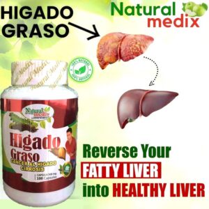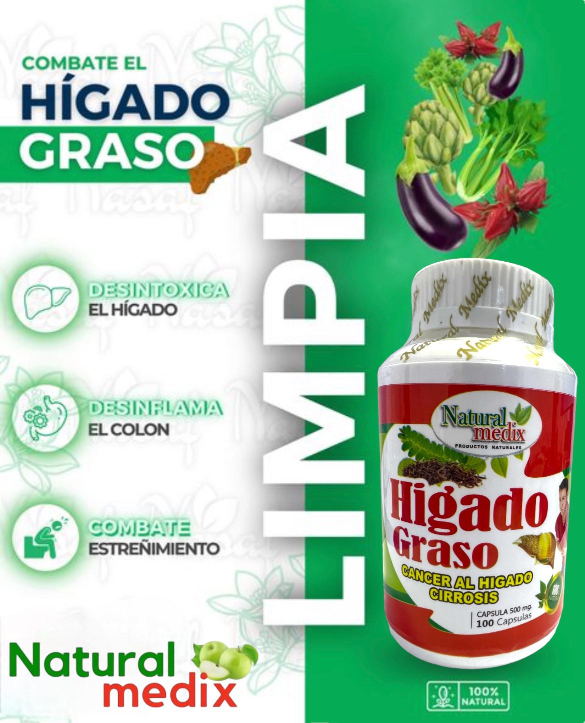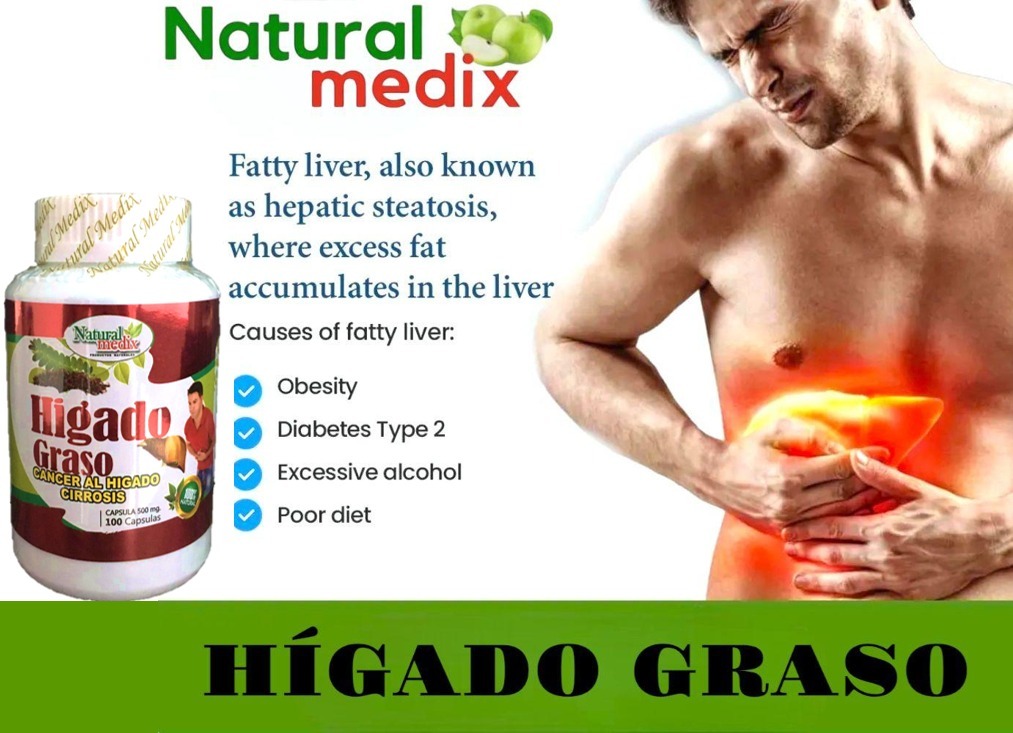 Hígado Graso es Un producto 100 Natural hecho de componentes para tratar el la Grasa en el hígado, Boca Amarga, saliva espesa, dolor de estomago, hinchazón de estomago y además previene la cirrosis.