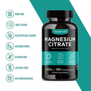 - Detalles del Producto: Cada frasco contiene 180 cápsulas vegetarianas de Citrato de Magnesio, cada una con 400mg.