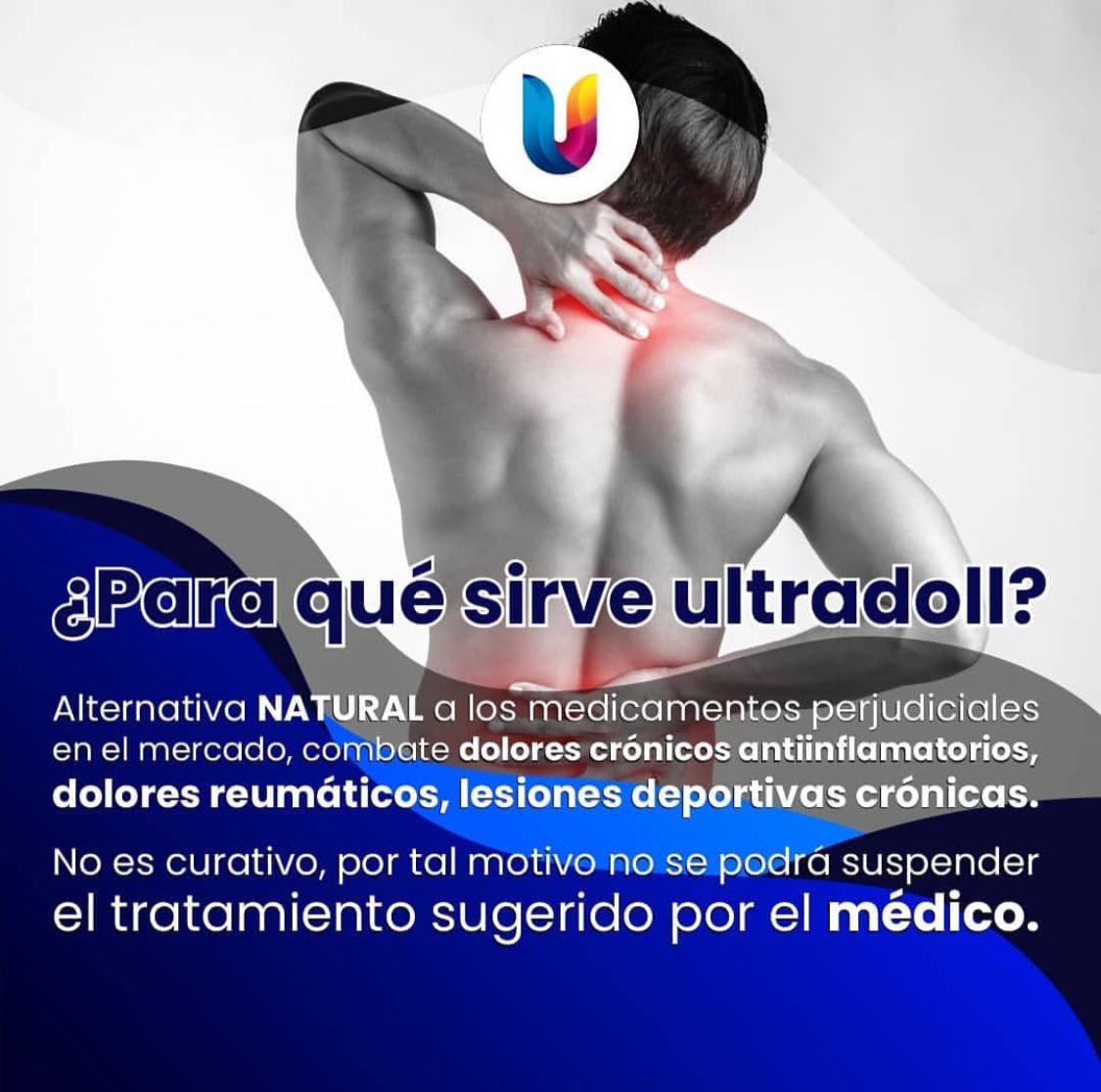 Ultradoll tiene muchos beneficios en problemas de Artritis, Tendinitis,Osteoartritis,Lumbagias.Es un medicamento Natural para problemas inflamatorios, reumáticos, es excelente en lesiones deportivas, y en procesos inflamatorios en los cuales hay que reducir el dolor.