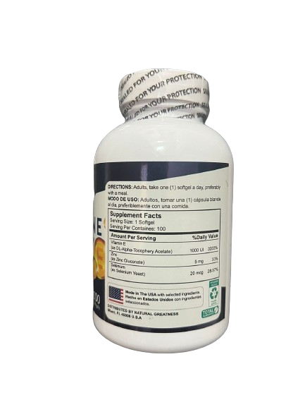 Vitamin E Plus Zinc y Selenium es una excelente combinacion de componentes para el cuidado de las celulas.