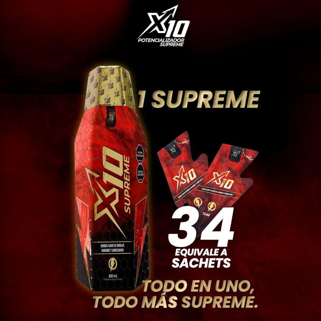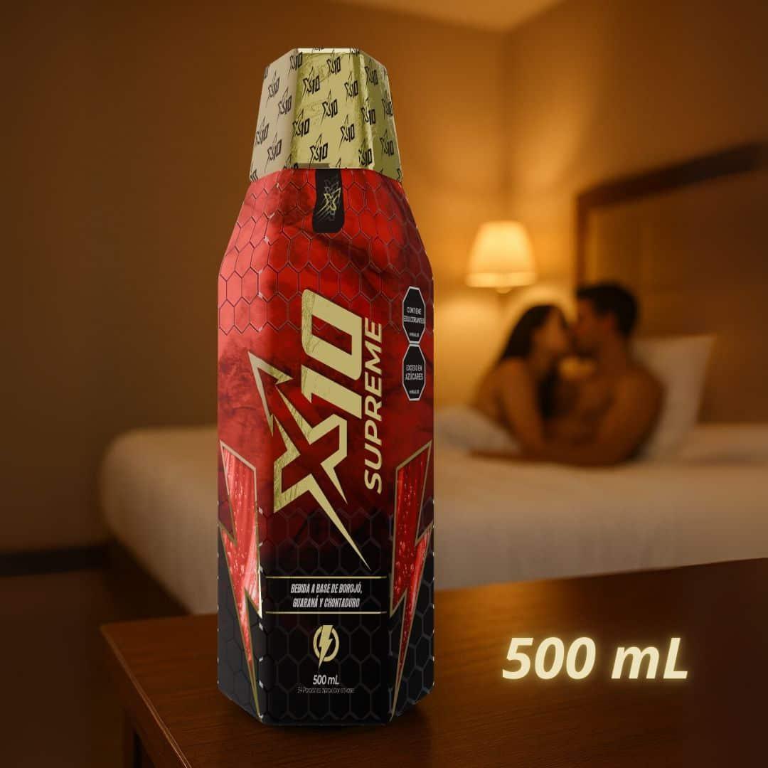 X10 Supreme 500ml no solo ofrece un sabor único, sino que también proporciona una fuente de energía natural que impulsa tu desempeño diario. Ideal para quienes buscan mantenerse activos, enfocados y saludables, este jarabe energizante se convierte en el aliado perfecto para alcanzar tus objetivos.